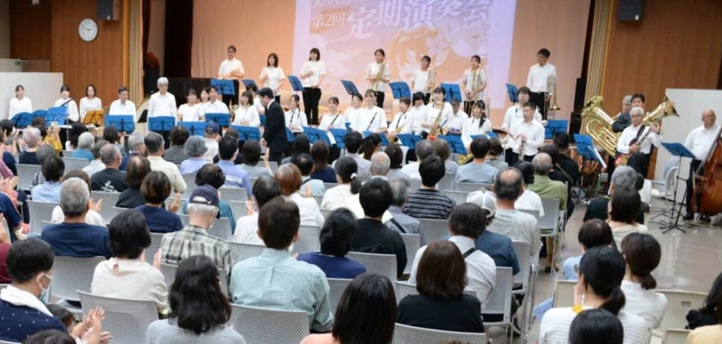 昨年度は定期演奏会を含めた演奏の場が5回でしたが、今年度は既に10回も予定しているそう。「定期演奏会では、一部と二部の構成で何度も足を運んでくれる方にも楽しんでもらえるように、曲目は毎公演一新します。一部では各世代が楽しめるように、年配の方に向けて時代劇スペシャル、若い子たちにはSNSバズりメドレーなど、テーマを考えて工夫を凝らしています。二部ではしっかりと音楽を感じられる曲を選ぶようにしていて、地域の方が熱心に聴いてくれるのが伝わり、何よりうれしい」といいます。